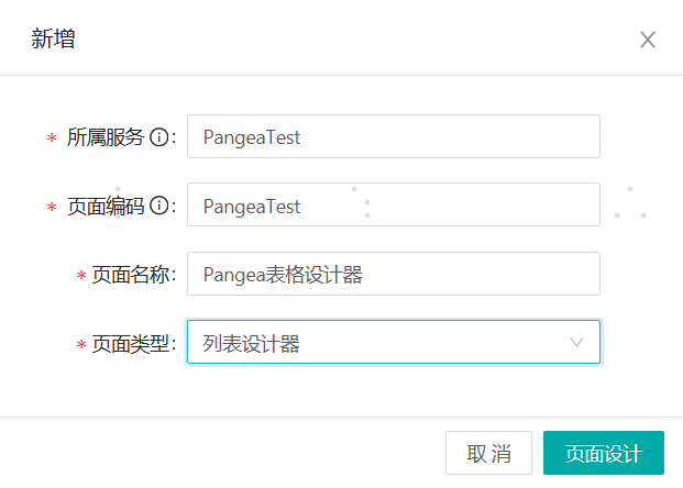 所属服务:当前页面对应的后端api接口在哪个服务中,在列表设计器设计完列表页面时,列表涉及到的api请求路径会拼接该服务编码。